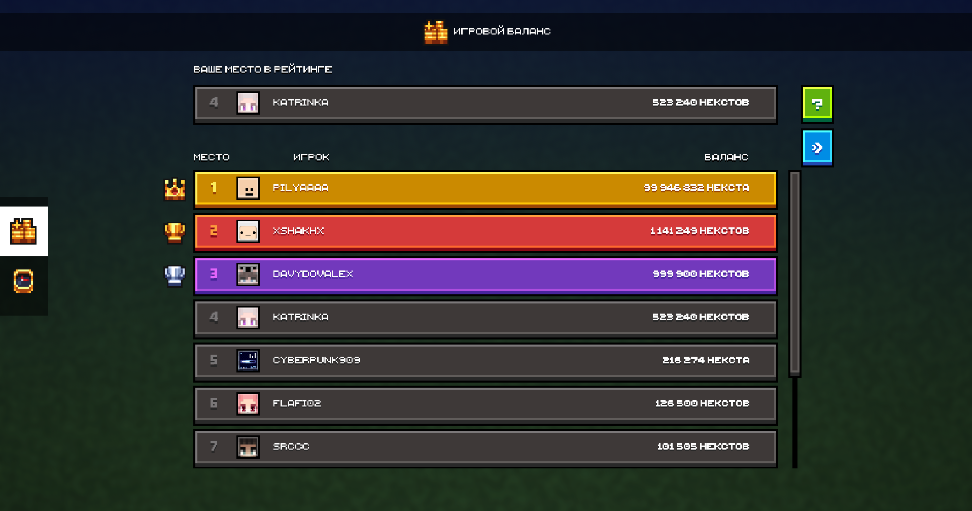 Три лучших игрока каждого рейтинга регулярно получают дополнительные игровые бонусы